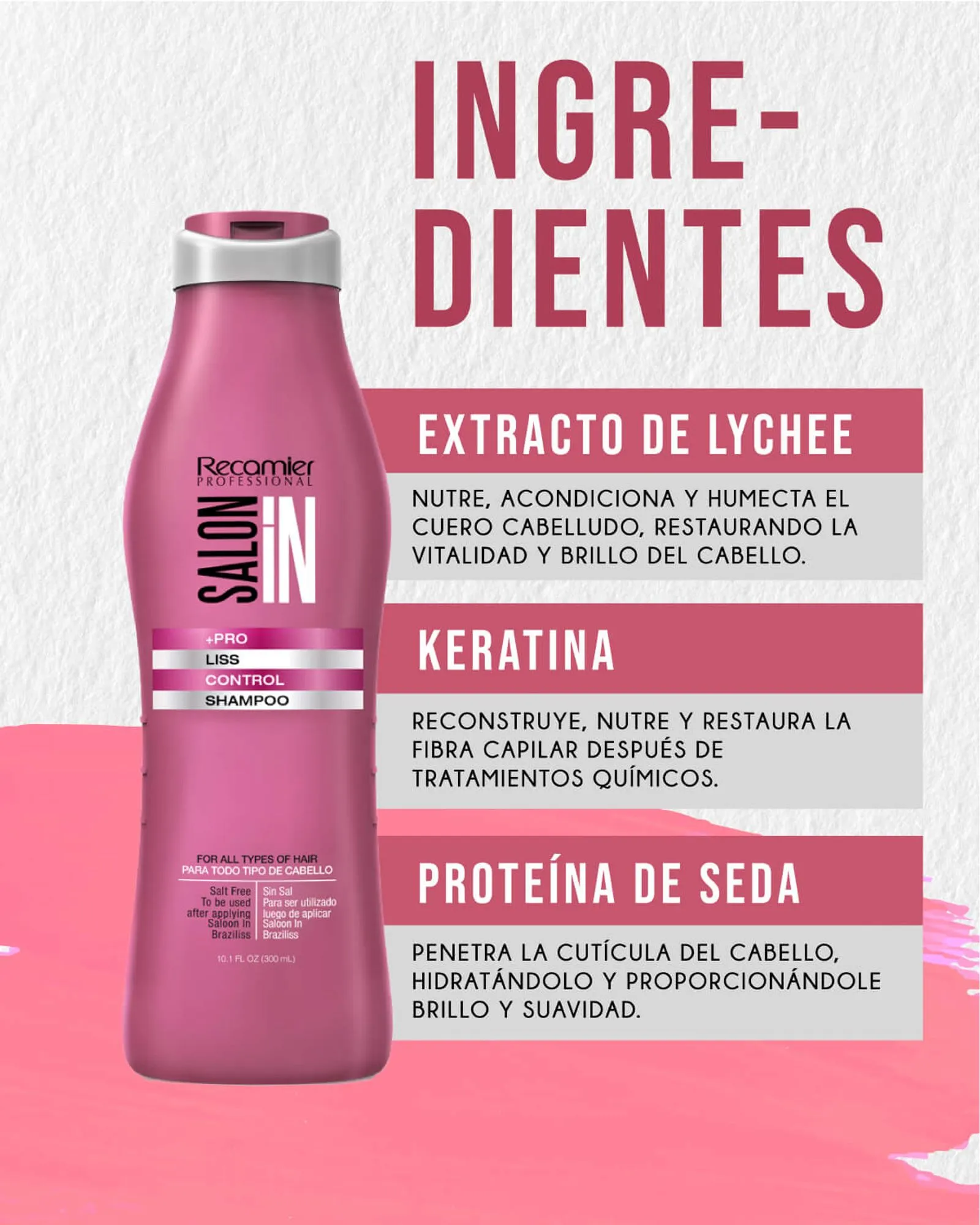 Shampoo que limpia profundamente el cabello sin maltratarlo, ideal para prolongar los efectos del alisado. Su fórmula profesional, enriquecida con ingredientes activos de origen natural, ayuda a mantener el cabello liso, suave, brillante y manejable por más tiempo. Diseñado para complementar el tratamiento Braziliss de Salon In, es perfecto para cabello alisado químicamente o con procesos de keratina que requieren un cuidado delicado pero efectivo.